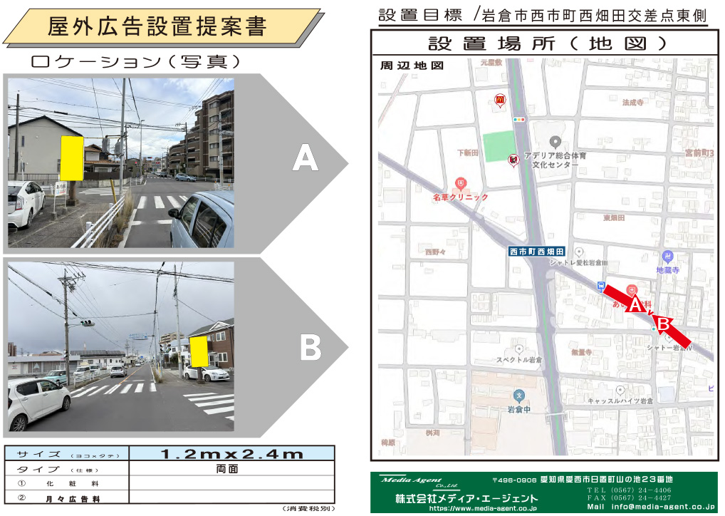 屋外広告は通称野立看板とも呼ばれており、広告媒体の1つです。より効果的な場所に設置することにより、医院や店舗等の広告効果・お客様の誘導に効果がございます。